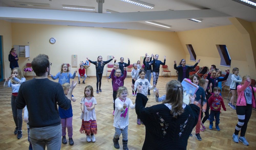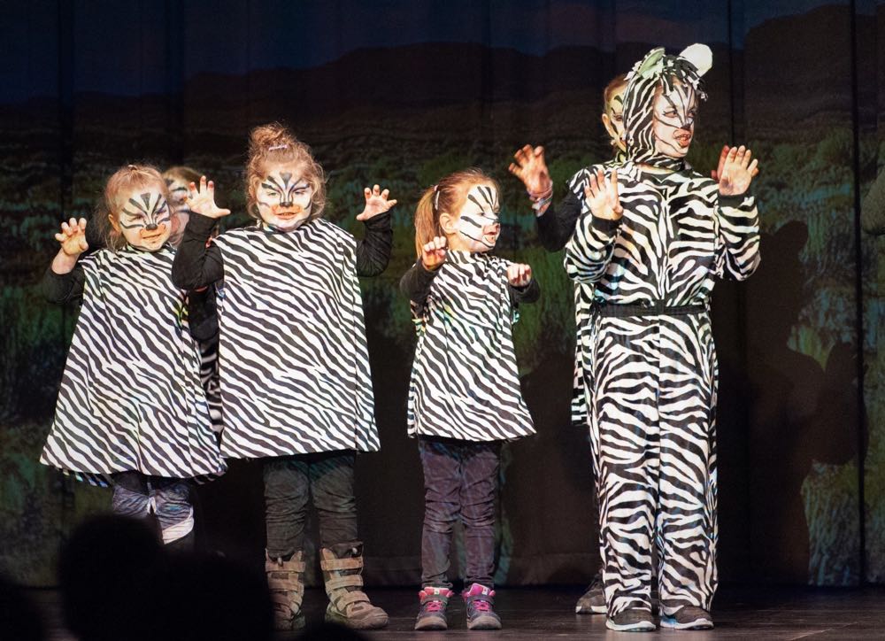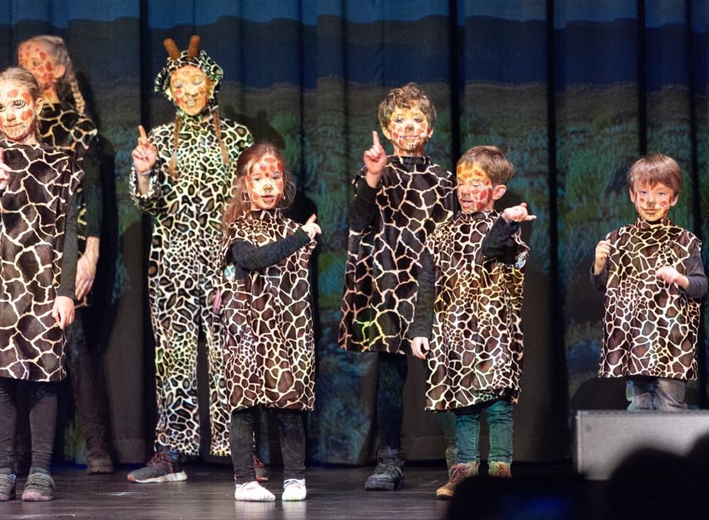 Wir leben in einer Welt, Seite an Seite, Hand in Hand. Ganz egal, ob Punkte oder Streifen, ob groß oder klein, ganz gleich woher du kommst. Das ist die Botschaft des Singspiels TUISHI PAMOJA. Der JuMuBS-Pfefferchor tanzte, sang und spielte gemeinsam mit Kindern des heilpädagogischen Kindergartens der Lebenshilfe. Das TUISHI-Ensemble, Sänger mit oder ohne Behinderung, – ganz egal!